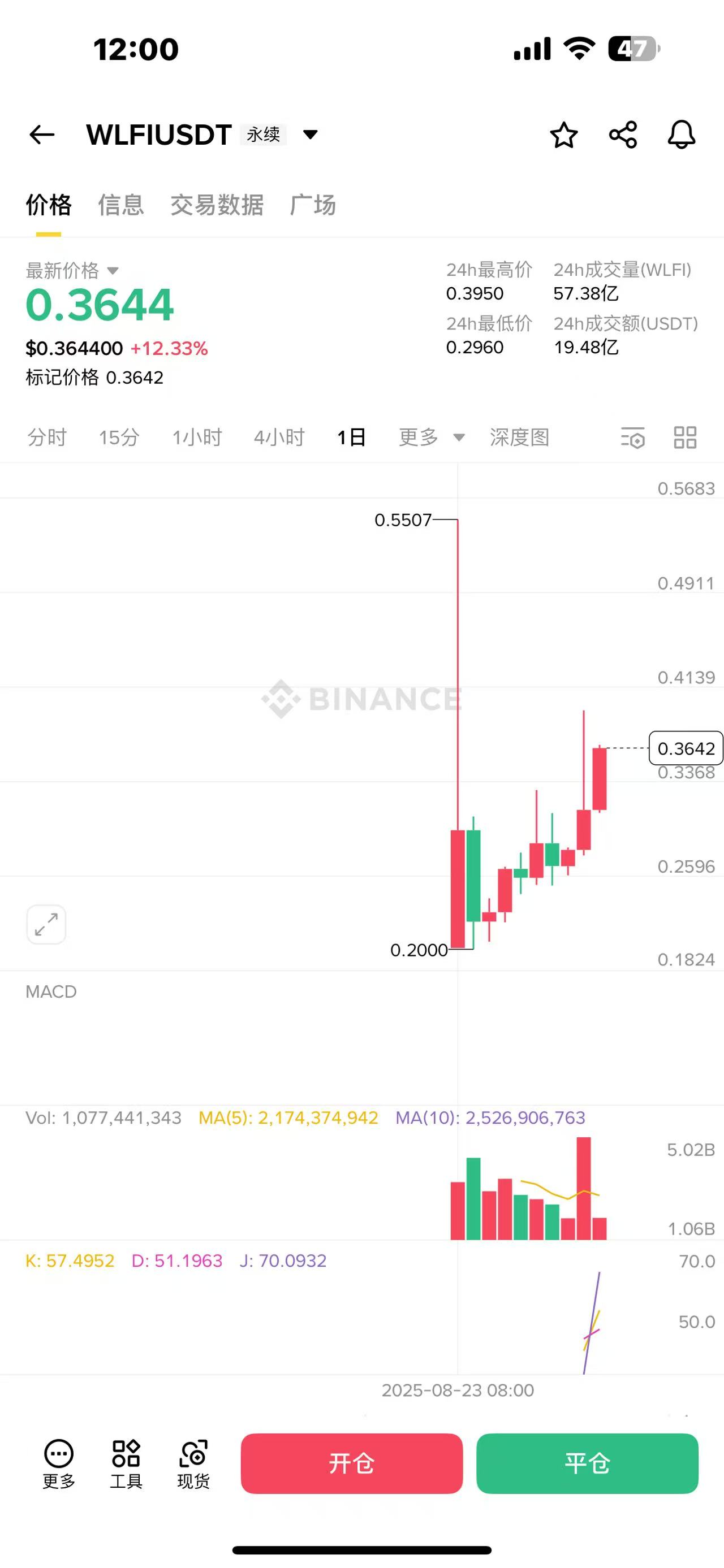 中期回调:部分投资者获利了结,导致价格出现回调。目前,WLFI的价格约为0.34美元,较一周前超过0.40美元的峰值有所回落。