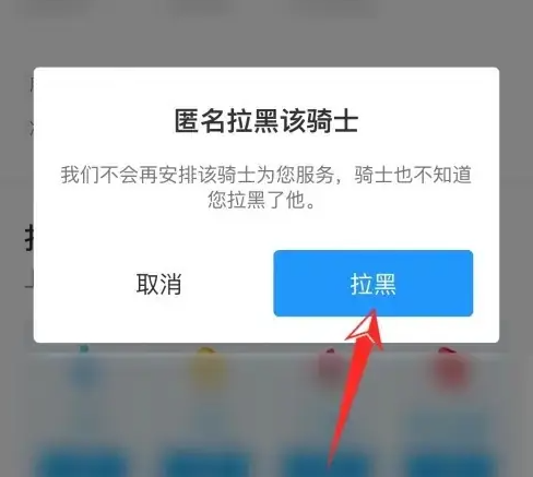 5、拉黑骑手后,该骑手将不再接收用户的订单。