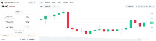 截至2025年7月,LEO的价格约为9.02美元,其市值为83.4亿美元,使LEO成为CoinMarketCap排名第20位的加密货币 - UNUS SED LEO。