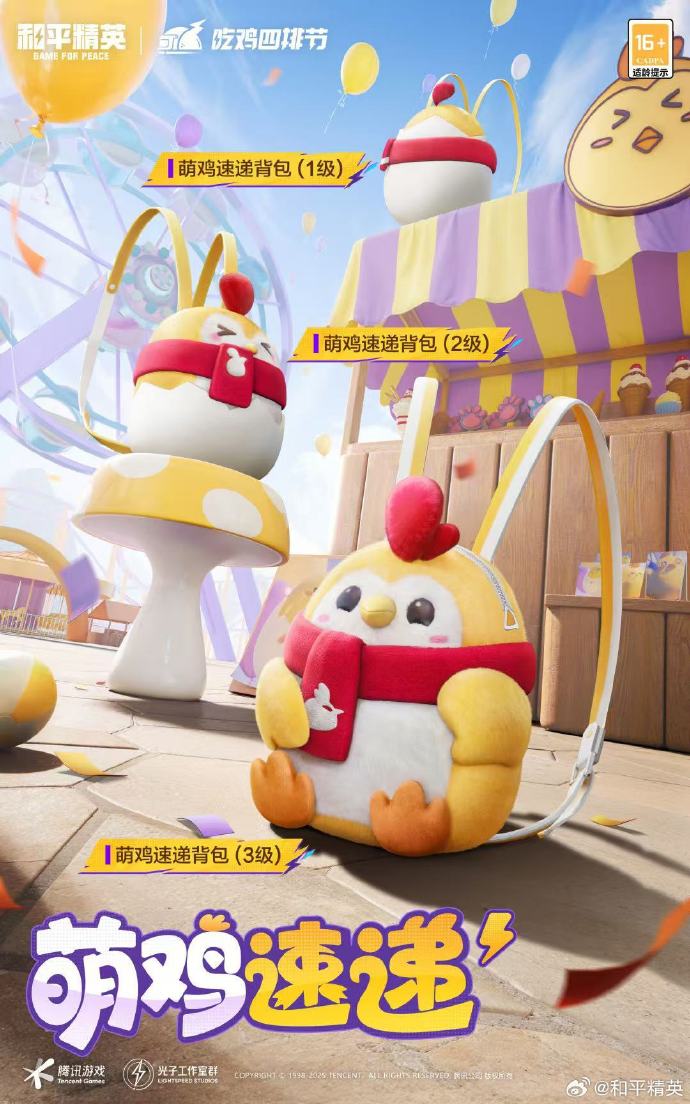 10月1日上号直接在【萌鸡速递】系列套装、全套头盔、全套背包中任选一件领取,完成任务还可再得另外两件!