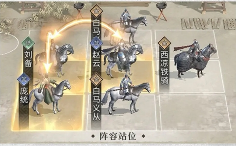 站位:庞统和赵云刚好能踩到刘备提供的两个追击格,而双核的阵容体系下也能保障该套阵容即使在残兵的情况下也能拥有不俗的战斗能力。