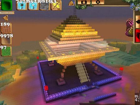 1、铺上一块场地作为飞碟降落台,大小自己选择,降落台四周围上水晶块,四个点做上信号灯,在降落台做上飞碟支柱。