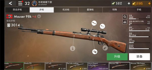 这把陪我从25~30级的狙击步枪,到现在我还是用它,它是真的不错,但是缺点就是后期需要2~3枪才能打死人,后期就换98k。