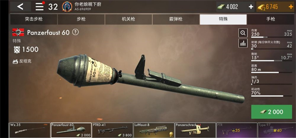 这把我记印象中是30级后的武器,我是过了30级之后,才过一些特殊武器的任务,也是配合机枪兵的特性,我觉得要杀死一个人,需要2~3发才能打死对方,最好是打残血,半血或者是去打队友没打死的敌人,一定一发就处理好了。