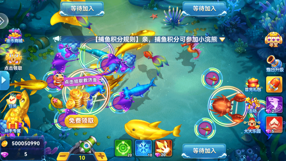 玩家可在实时渔场领取免费金币,打鱼过程中还能抽取大奖。此外,精彩活动将赠送丰厚奖励,助力玩家成为捕鱼高手,令人羡慕不已。另外,每日登录游戏即可领取免费金币,每天都有新收获,记得每日登录哦。