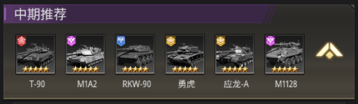 以4系战车为基础,加强阵容的反打和收割能力,T-90增加阵容前排坦度同时具备反打能力,挑战者2配合虎式进行战场收割,半人马座降低敌军的火力输出以及RKW-90的控制,间接提高我方阵容生存力