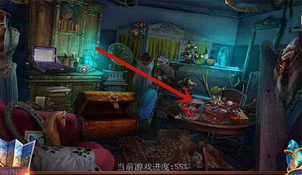 2、玩家要找到红缎带,就能解开谜题,缎带在桌子上的首饰盒里,打开首饰盒,拿开首饰就可以看见红缎带了。