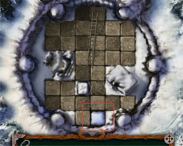 4.点击最上方中间雪堆上方的方块,再点击右侧两个雪堆中间的方块。