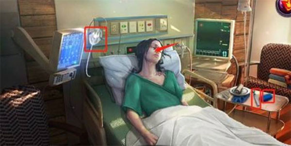 1、点击女孩,点击后,拿到耳镜和膏贴,并给女孩戴上氧气罩。