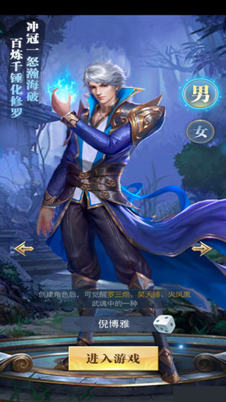 登录游戏以后需要创建角色,玩家只能选择自己的性别和姓名。点击左右符号或者男女性别就可以转换人物形象,萌新也可以选择自己输入名字或者使用系统选择,十分方便取名废的玩家!