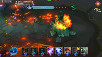 7-7:地精用技能“死亡射击”清掉,它打防御塔太痛了。别着急清对方防御塔,等到第一波boss打掉,用技能“大地崩裂”清除敌方防御塔,然后直接放置“巨炮破塔队”。