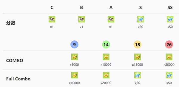 打歌:分数达到SS将会获得100星石,此外全连Hard以及EX难度(包括Special)都会给50星石。