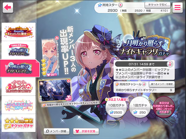 常驻玩家可以选择氪ガルパPass,价格480日元。提升在使用2个Live Boost以上获得的奖励,而且多次氪金可以累计获得购入回数特典:3回:米歇尔贴纸x300、6回:免费石头x2000、9回:免费石头x2500、12回:免费石头x5000。