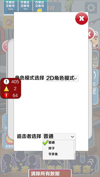 4、追击者可以改成胖子或者宇多鱼,然后关闭窗口就可以开始游戏了。