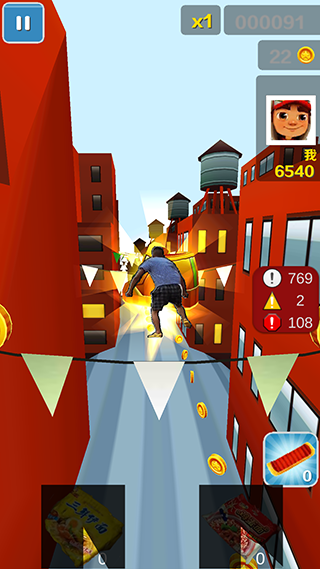 4、随机应变沉着应对,学会默数滑板的消失时间,以及优化跑酷路线(何时放开的捡道具、金币,何时选择安全路线为主)不要顾此失彼。