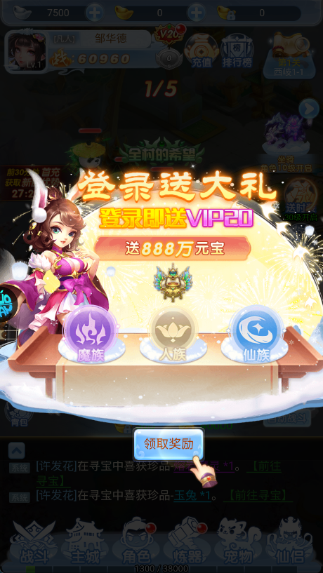 1、新手玩家一进入游戏就可以领取丰厚的物资奖励,享受0.1折充值,超高返利。