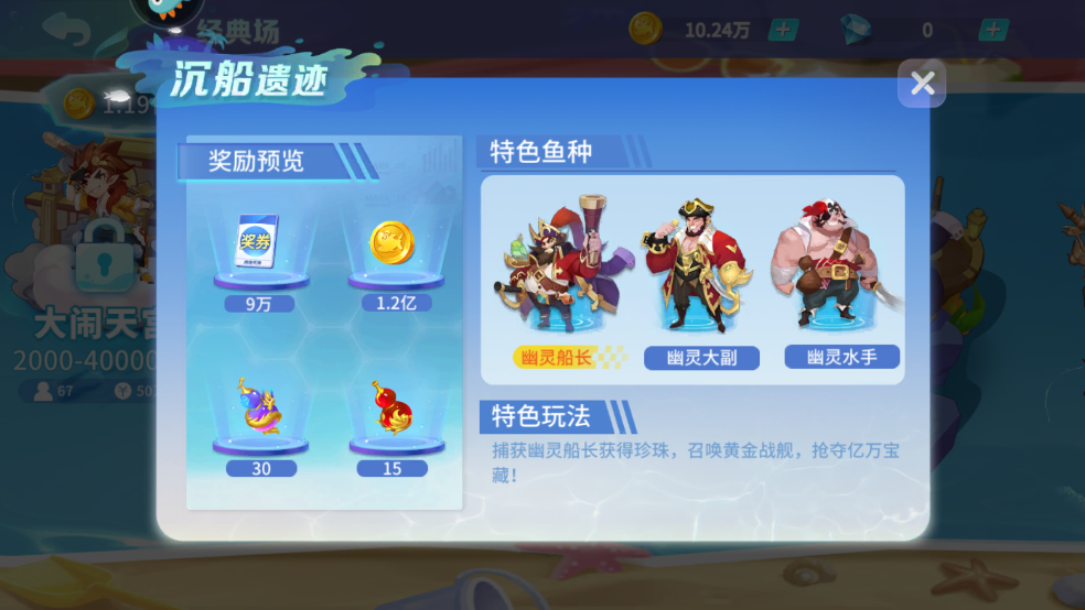 特色鱼种:幽灵船长、幽灵大副、幽灵水手