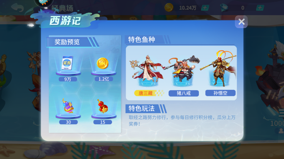 特色玩法:取经之路努力修行,参与每日修行积分榜,瓜分上万奖券!