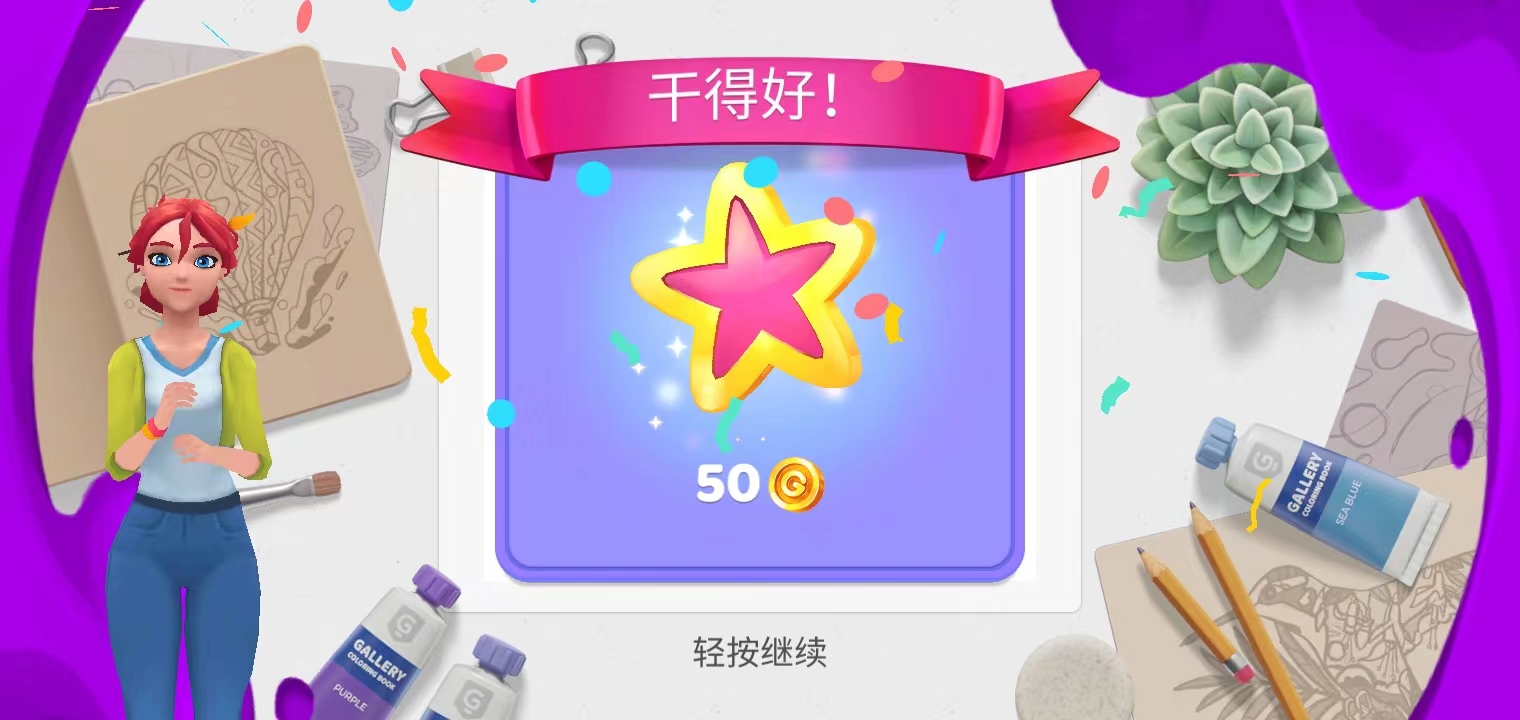 3、与她们一起添加多种多样的探险:给好看的手游大作着色,获得星辰来翻新老房子和废料的画廊