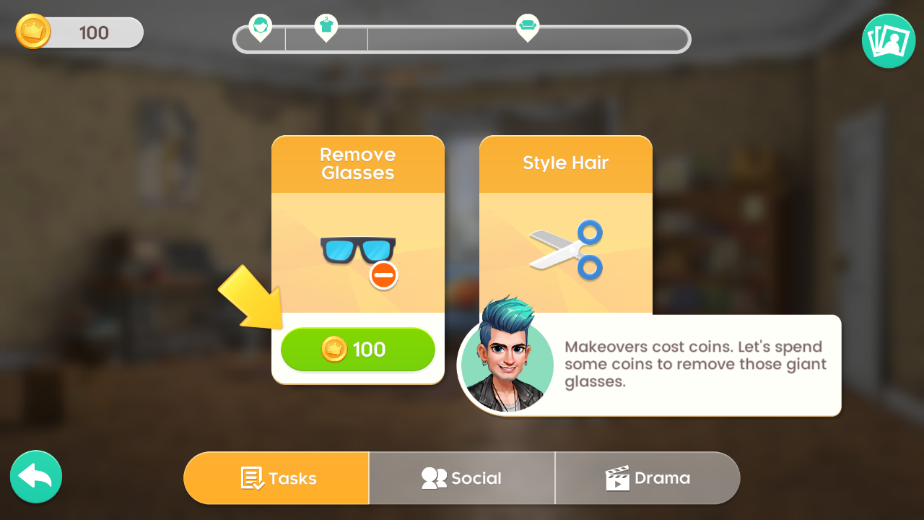 4、进入主页后,先花费100块钱拿掉这个眼镜;