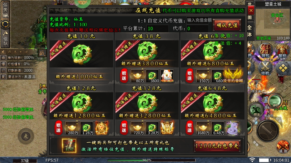 全场充值比例1:100