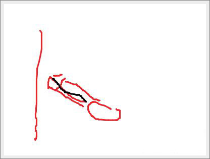 接上图,其实我画的线是中轴线,实际来说箭头是坑爹的。黑笔描的是中轴线,这一点很重要,后文出现一切瞄准类都以中轴线为准