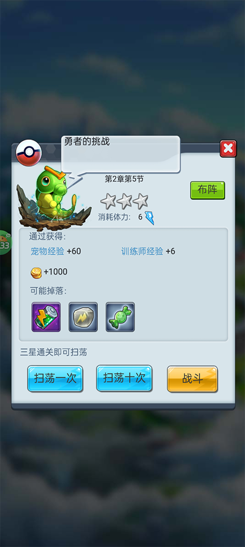 4、选择掉落经验高的副本进行多次刷取,可以快速提升精灵等级,进而提高战力值。