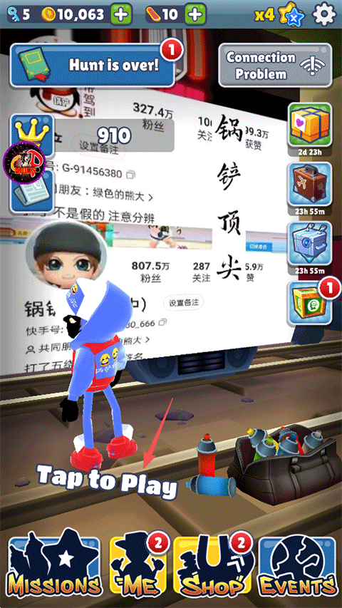 1、打开地铁跑酷锅铲QAQ定制版,点击主页的Tap to Play开始游戏;