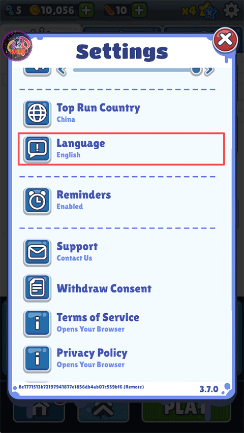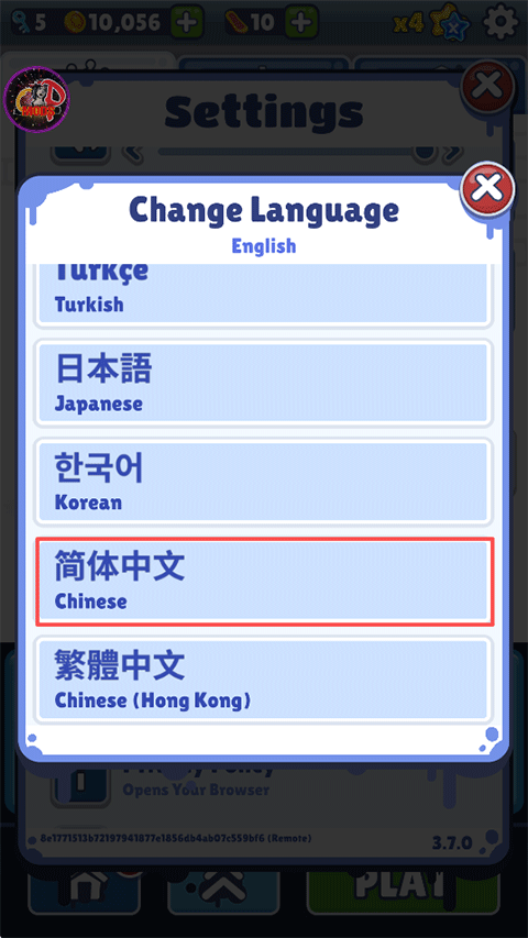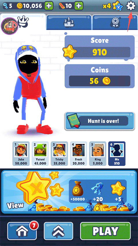 6、每局游戏结束都将记录你的分数、金币,点击右上角的设置图标;