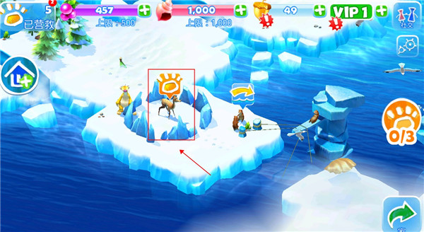 5、游戏的任务分为几种,一个是跑酷拯救,玩家控制希德不仅要避开障碍物,还要全程没有受到伤害,才能够救出动物;另一种是三消拯救,玩家需要在规定的次数内消除障碍物得到规定数量的桃心;最后一种,就是在游戏中还要玩家完成寻找任务,例如寻找树枝,绳子,火把等等。