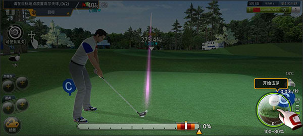 比如说前方果岭球洞蓝字11。落点为球洞。击球红线力度是95%。那么你最佳击球力度是83% 完美击球理论上一杆中。