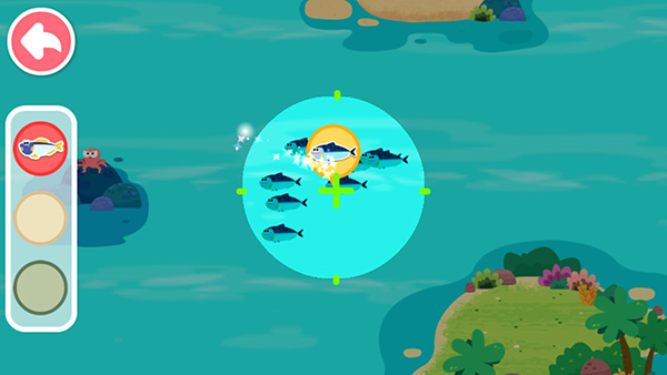 3. 精心设计三大主题场景与二十种特色海洋生物,配合详实的鱼类百科知识,在互动中培养孩子的认知能力与探索精神。