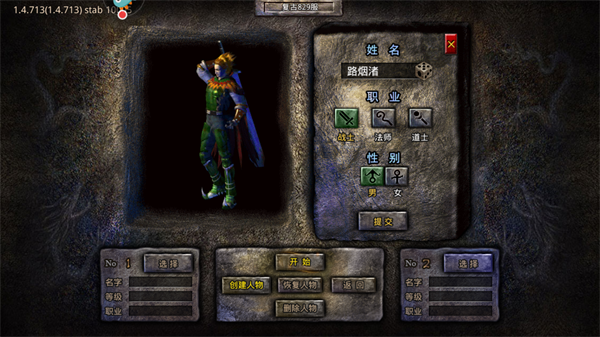 首次进入就是角色创建界面,随机选择或输入昵称。当昵称符合规范且未被他人注册时,才可以使用。可以选择职业和性别,点击“提交”开始游戏。小编这里强烈建议大家取一个霸气的名字,后面打到好装备上电视时威风的不得了。