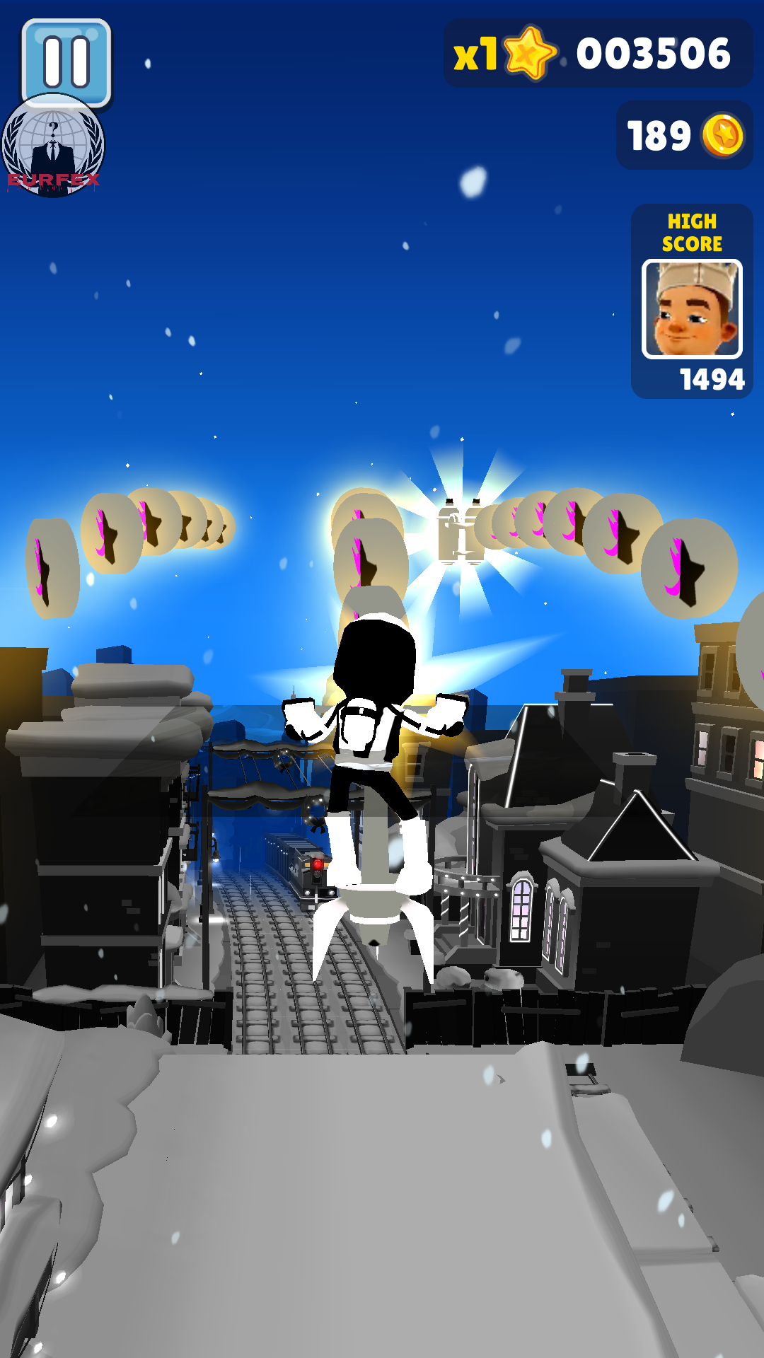 2、多多拾取地方刷新的各种道具,他能让你跑到更高的分数