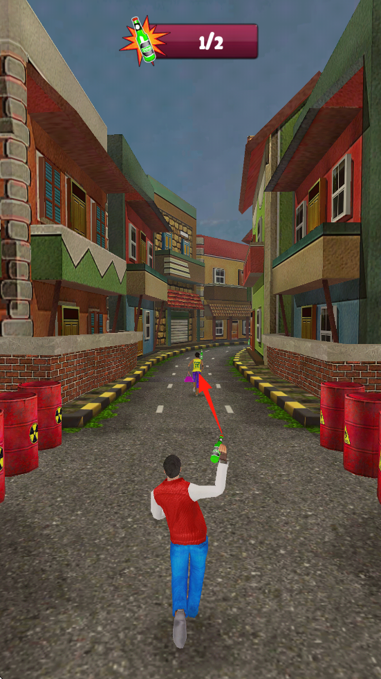 4、捡起道路中的酒瓶子,将酒瓶子扔出去来打击强盗