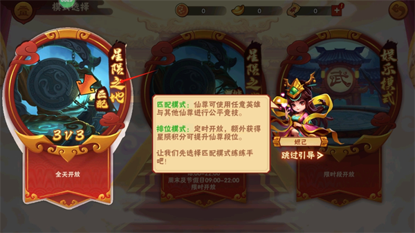 2、选择好角色后会获得师徒三兄弟,点击竞技模式选择3v3。