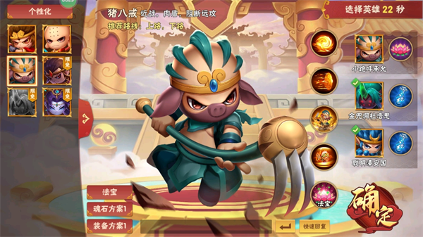 既然是西游主题的游戏,主角怎么少得了齐天大圣孙悟空呢。孙悟空的被动技能是他最拿手的72变,即受到伤害又可能变化分身,分身会跟随本体一起释放技能,但是释放完技能就消失了。孙悟空的被动上限非常高,无论是配合上烈焰闪、旋风斩还是大招都能打出非常爆炸的输出或是群体控制。孙悟空的大招伤害非常高,且是群体伤害,想象两个猴子一起放大招,画面简直美如画。美中不足是被动概率触发,脸黑的话相当于少一个被动技能。