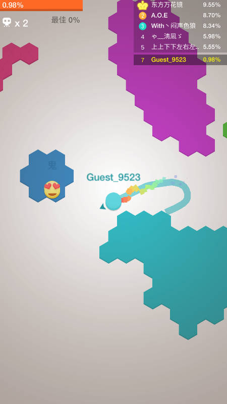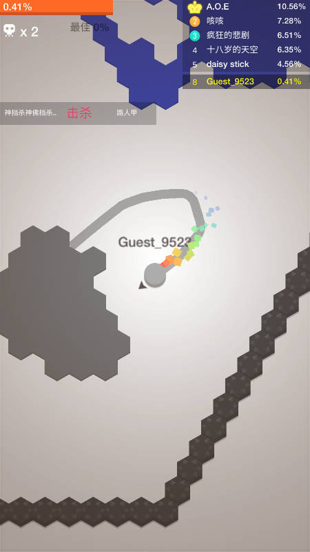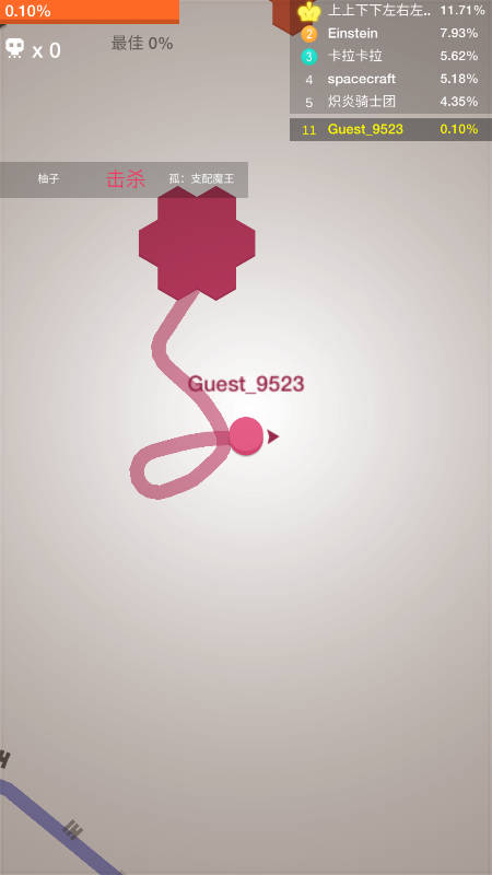 8、发现敌人划线时可主动切断其路径,将其淘汰并吞并其领地,假装撤退吸引对手追击,然后突然转向反切击杀。