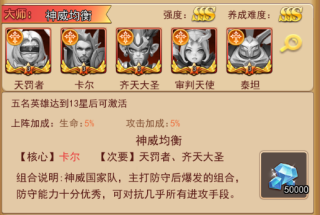 阵容组成:天罚者+卡尔+齐天大圣+审判天使+泰坦;