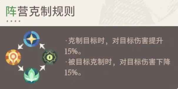 队伍中包含3/(3+2)/4/5个相同阵营的角色时,则所有上阵角色提升10%/14%/18%/22%的攻击力与生命值。