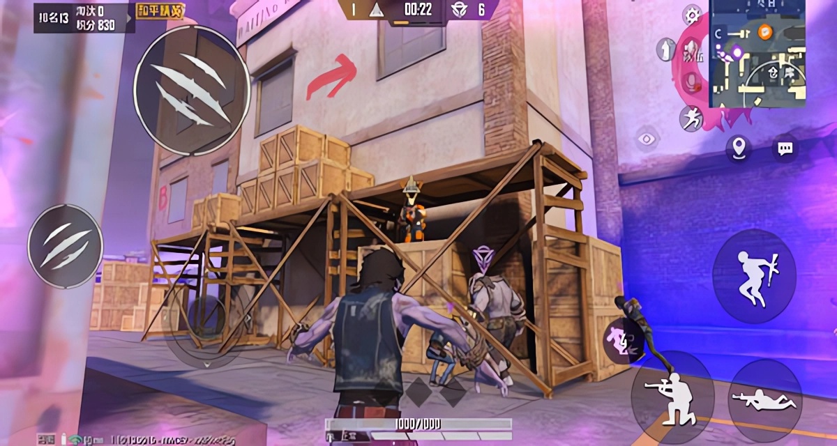 第二处点位位于右侧集装箱的墙缝上,从侧边慢慢蹭进去。里面的一个小平台上有木箱,攀登到木箱上然后沿着集装箱的边缝就可以走到外侧的这个集装箱上,这中间只有一条小路,所以特种兵只要侧头对准这个小路架枪即可,但是人数少很容易被强化战士强行突进来,所以想要躲在这边需要多人合作。