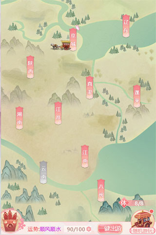 游玩分别有京城、直隶、辽东、江淮、江南、陕西、湖南、云南、八闽、蓬莱十个区域,除京城外其他区域需要小主的等级达到要求才可以解锁哦、当区域可以解锁时,可以点击消耗一定的资源解锁该区域。