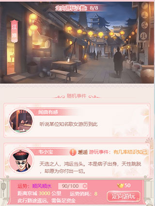 小主可以通过 点击游戏 界面右下方【随机游玩】的方式,随机到达某个地点,可以与不同地点的随机人物偶遇,更有机会获得丰厚奖励及道具哦!每次随机游玩消耗1点体力,体力每30分钟恢复1点。