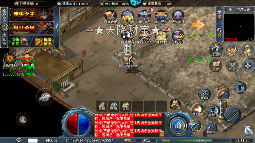 4. 打怪惊喜不断,散人也能嗨翻天。击败怪物不仅能获经验,还有机会得到充值卡、满V特权、绝版坐骑等珍贵道具,散人玩家也能畅享乐趣。