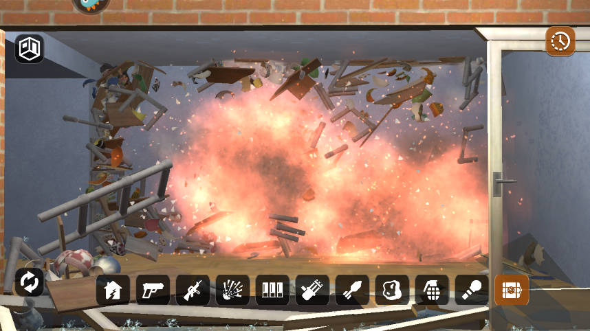 3、点击底部武器后再次点击房间位置就可以释放武器进行破坏