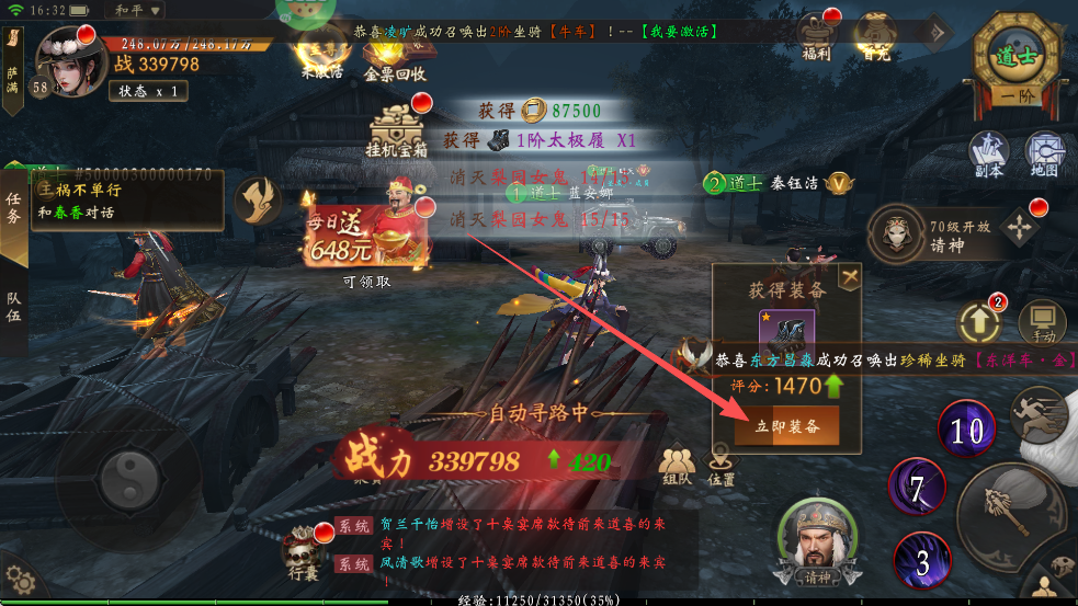 4、主线任务,支线任务,当然是必须得做的任务,玩家可以主线任务留着冲级的时候做,这样子这些任务一般至少都能升个一级两级的