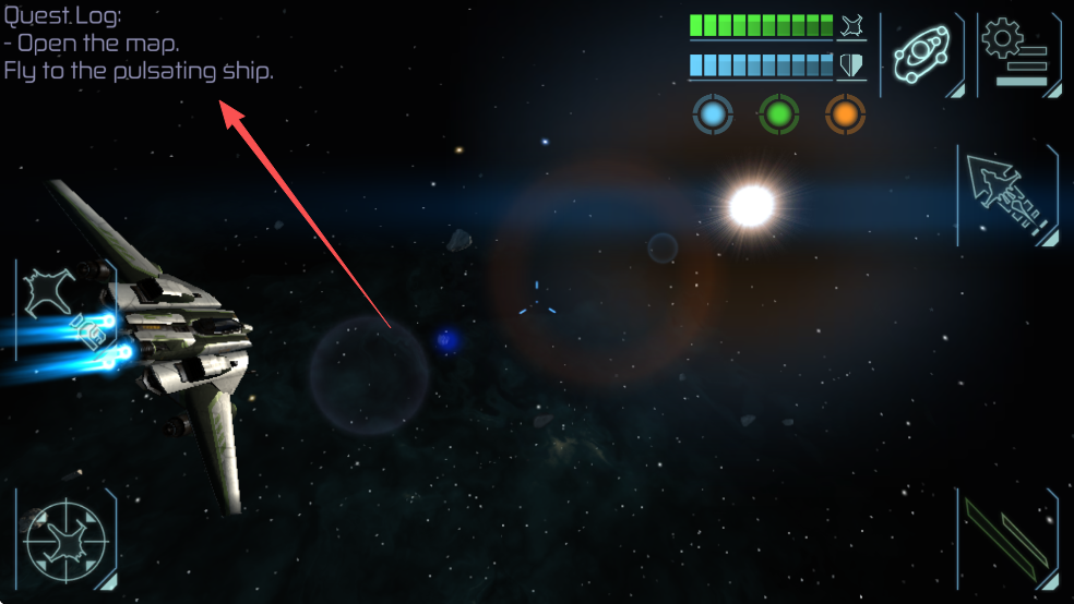 打开游戏,选择适合你的操作方式,第一种是重力感应来操控飞船方向,第二种是通过滑动屏幕来操控飞船方向