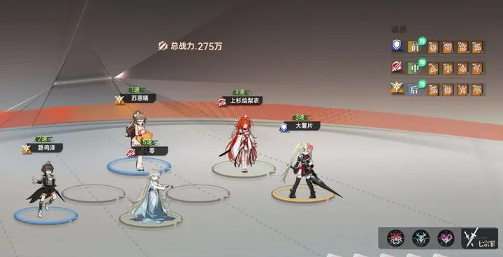 主角t前排,绘梨衣+零中路,后排薯片要对位绘梨衣回蓝,然后路鸣泽随便放。这套阵容目前打区里同战力吊着打。
