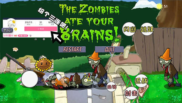 3、当僵尸靠近戴夫就会被吃掉脑子,左上角可以看到戴夫当前的生命,通过点击射击开始战斗吧;