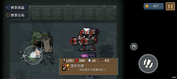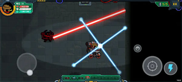 技巧:由于打BOSS的时间停止,如果boss房周围围了一圈小怪,红机甲初始武器(火箭筒)可以穿透左右两边的墙打掉小怪并吃零件(上下两边的不行)。给了我们时间限制以外的发育机会。